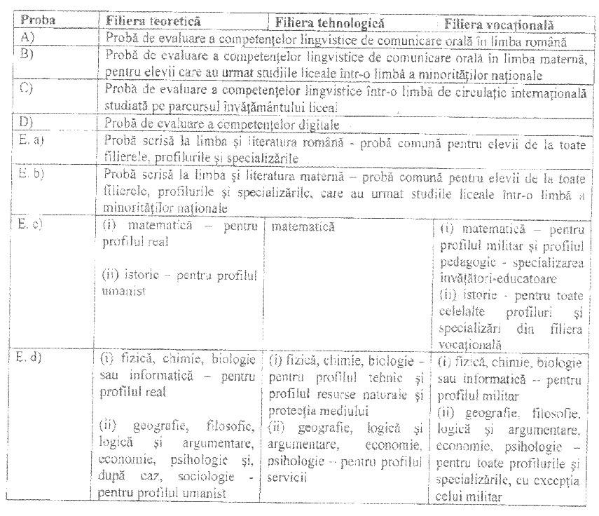 I. Structura examenului de bacalaureat in vigoare in anul 2012