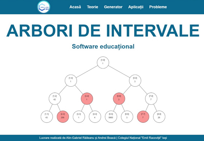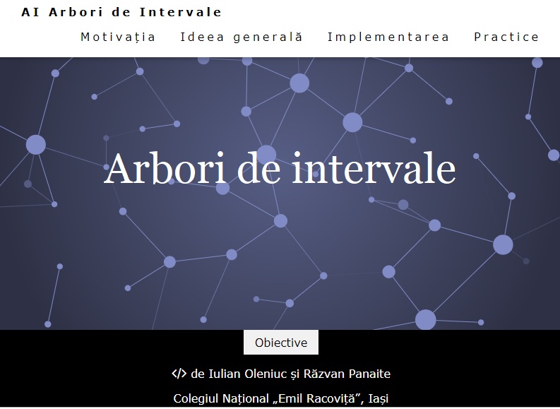 Arbori de intervale Proiect realizat de Razvan Panaite, Iulian Oleniuc, clasa a XI-a A Prof. coordonator: Emanuela Cerchez |