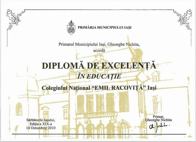 2010.Diplomă de Excelenţă în Educaţie