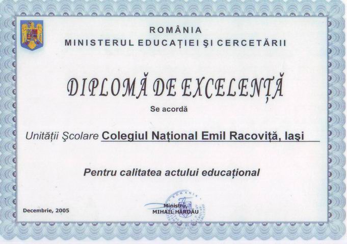 2005.Diplomă de Excelenţă