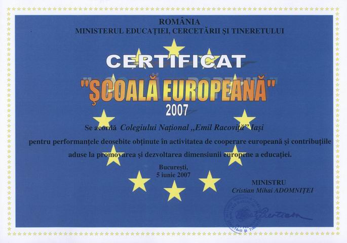 Colegiului Naţional „Emil Racoviţă” Iaşi are rol de avangardă în modernizarea şi reformarea învățământului românesc preuniversitar. Este componentă activă în integrarea europeană a şcolii româneşti. Educaţia este înţeleasă ca valoare pentru cel ce învaţă. Demersurile educaţionale sunt centrate pe: