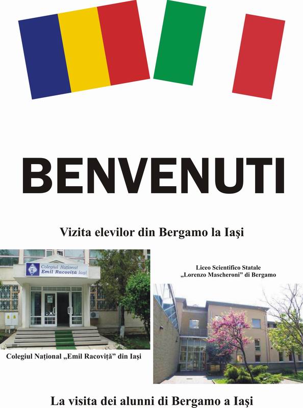 Colegiul Naţional “Emil Racoviţă”, Iaşi va găzdui, începând din data de 1 octombrie, vizita unui grup de 22 de elevi şi doi profesori de la Liceo Scientifico din Bergamo, Italia. Vizita este parte dintr-un proiect de schimb cultural, care are ca scop conştientizarea tinerilor cu privire la diversitatea culturală şi formarea unei atitudini pozitive faţă de diversitate. Elevii şi profesorii italieni se vor familiariza cu sistemul educaţional românesc, prin participarea la activităţi şi discuţii cu colegii români. Proiectul se desfăşoară în limba engleză, lucru care duce la creşterea încrederii tinerilor în capacitatea lor de a comunica în situaţii şi pe teme diferite.
