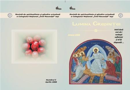 Revista Lumina Credinței a apărut în noiembrie 2005 la insistența elevilor liceeni de la Colegiul Național "Emil Racoviță", cărora li s-a acordat șansa de a-și exprima sentimentele față de Adevărul absolut, frământările lăuntrice și căutările spirituale specifice adolescenței. Revista Colegiului nostru este o revistă de spiritualitate și gândire ortodoxă, structurată pe mai multe capitole, editându-se cu binecuvântarea mitropolitului Moldovei și Bucovinei. Ea se adresează, în mod deosebit, inimilor iubitoare de valori netrecătoare, dar și celor mai puțin familiarizați cu literatura teologică. Prin urmare, intră dacă vrei să-i vorbești sufletului și să-ți răspundă...